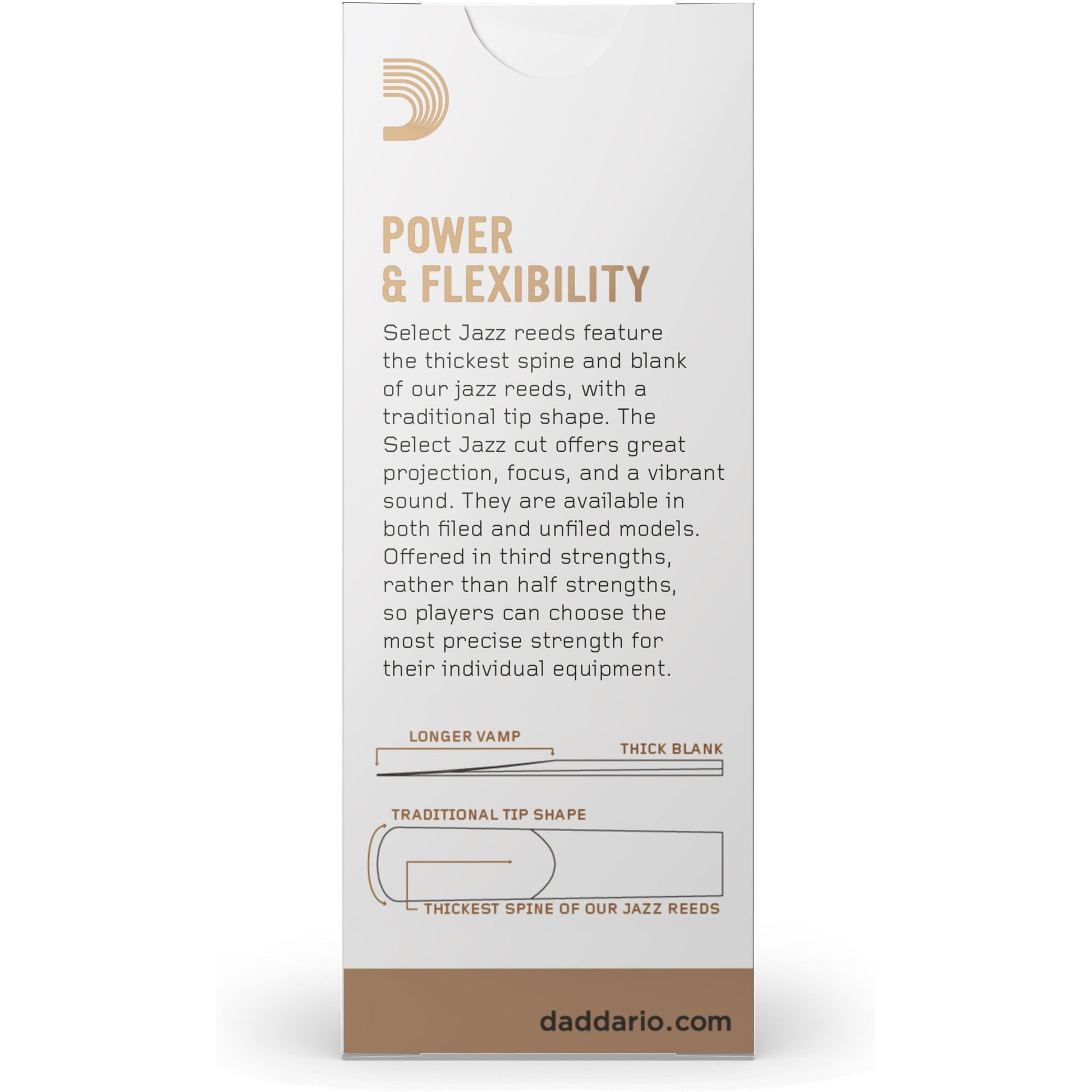 D'Addario Select Jazz Unfiled Tenor Saxophone Reeds, Strength 3 Medium, 5-Pack