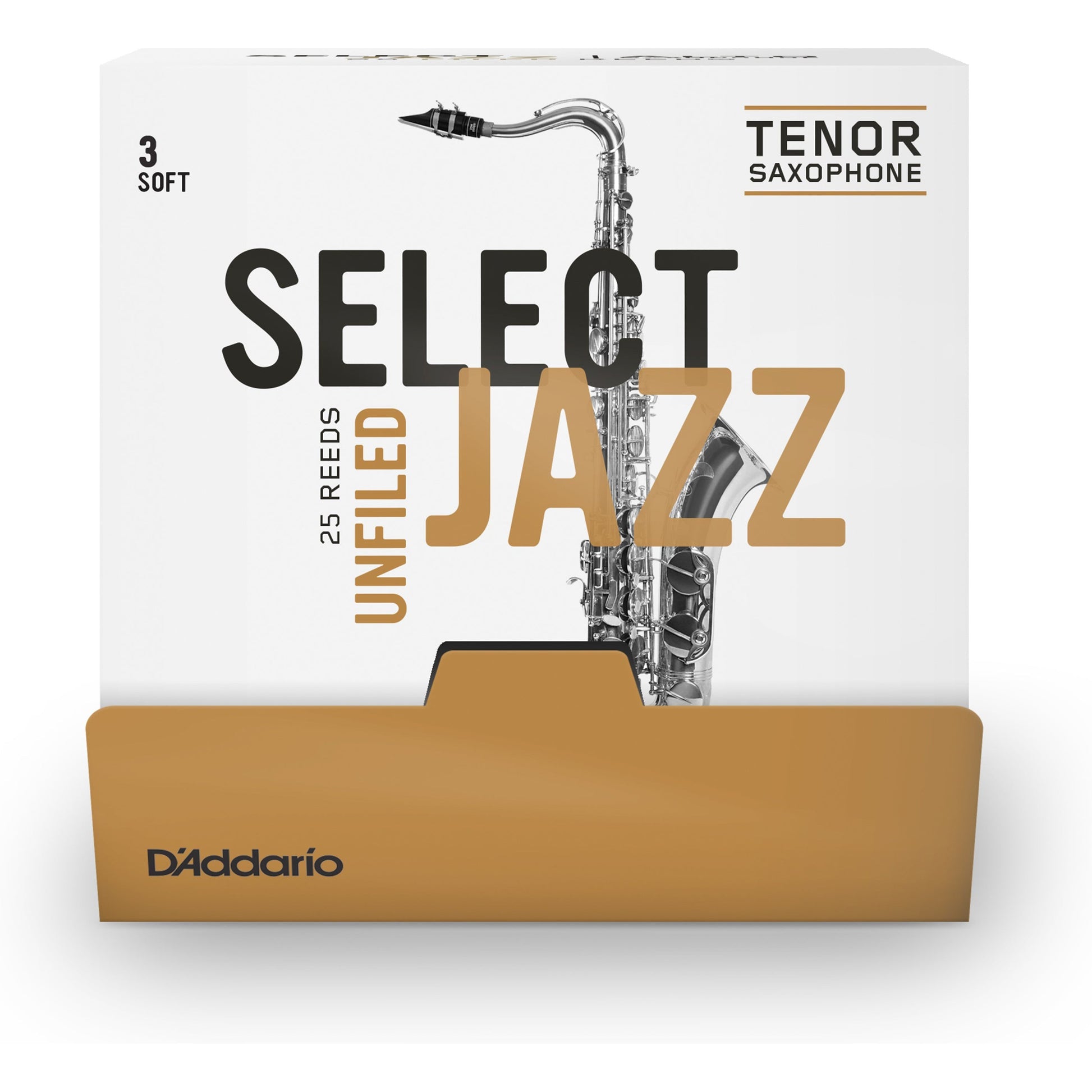 D'Addario Select Jazz Unfiled Tenor Saxophone Reeds, Strength 3 Soft, 25 Box