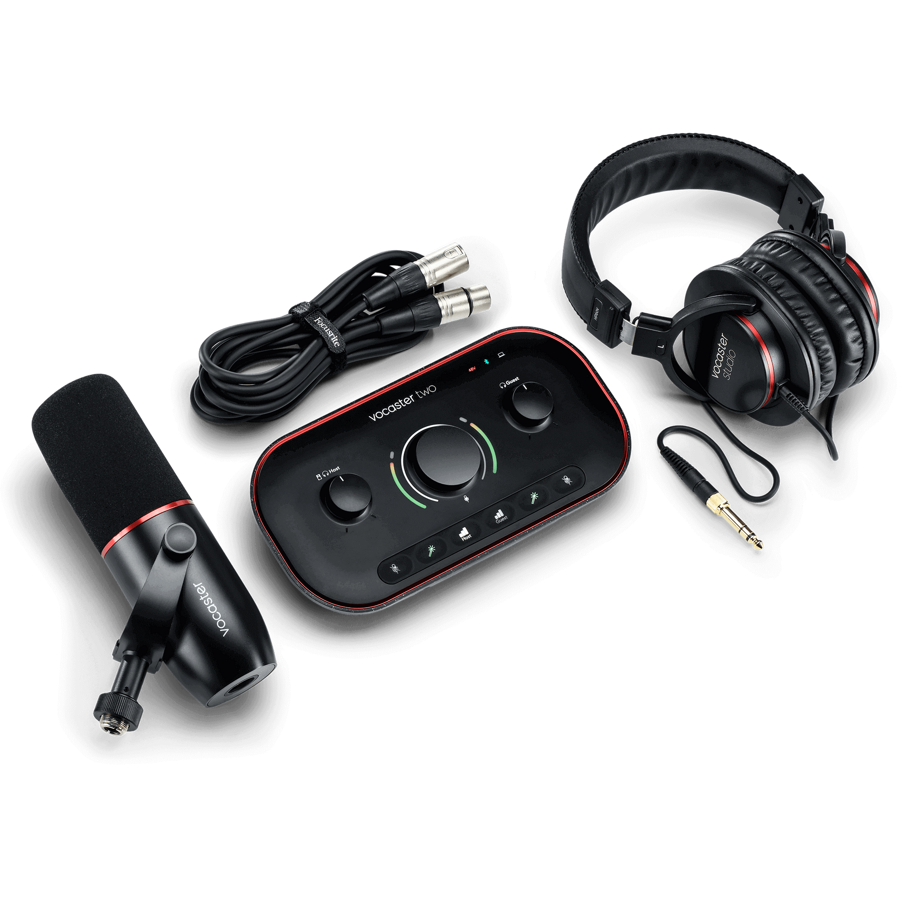 - Our best mic and headphones — The included Vocaster DM14v broadcast-quality dynamic mic features built-in windshield and shock mount, and HP60v closed-back studio headphones let you hear your show as the world will.