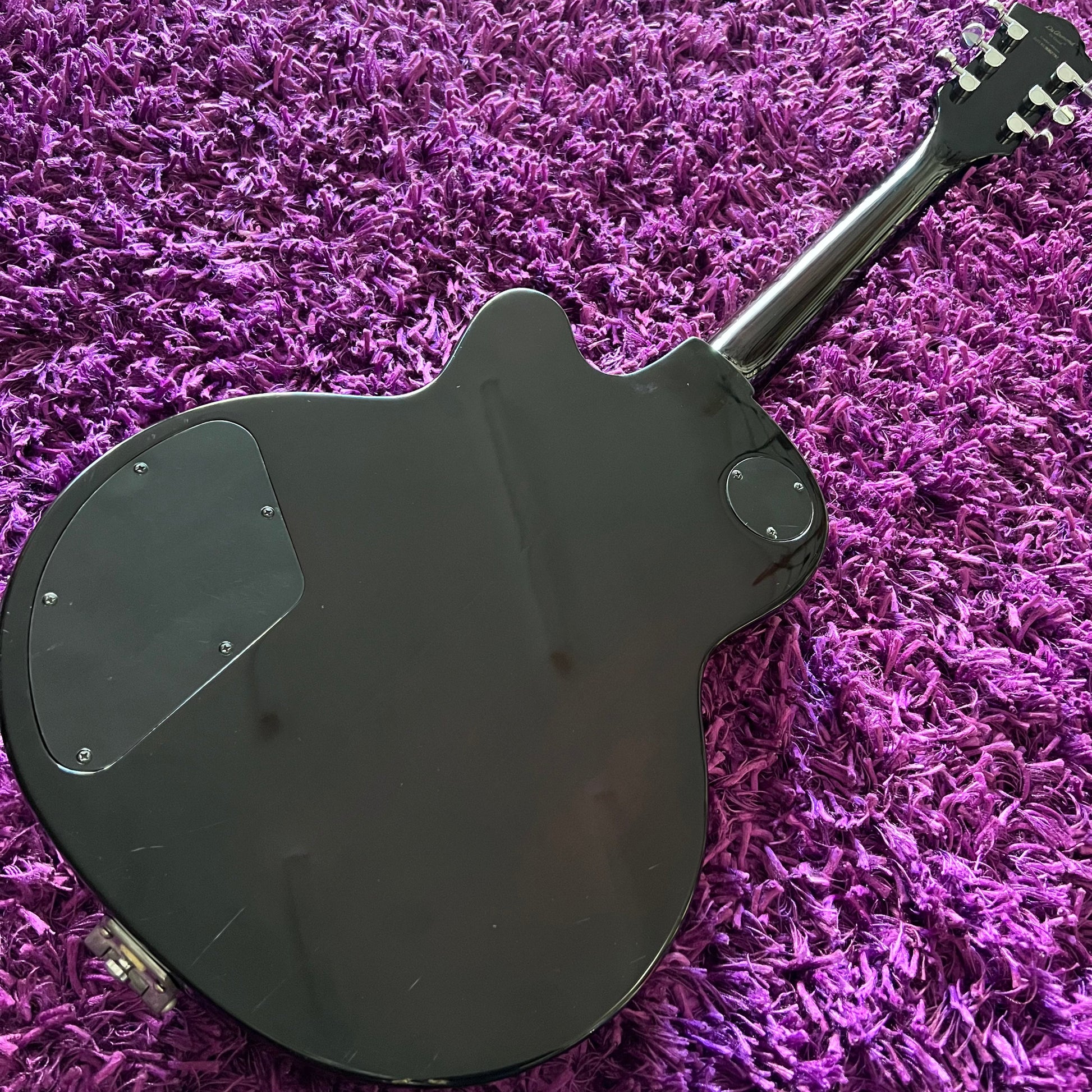 A super cool and super sparkly offering from DeArmond by Guild, the M-75T was produced in Korea in the late 90s and early 2000s and is a very stylish and unique single cutaway LP style guitar. Featuring dual DynaSonic pickups which have a very sweet and articulate tone with a slight variation on traditional pickup configuring, think of it as a twisted Gretsch Duo Jet with beefier styling and tones.
