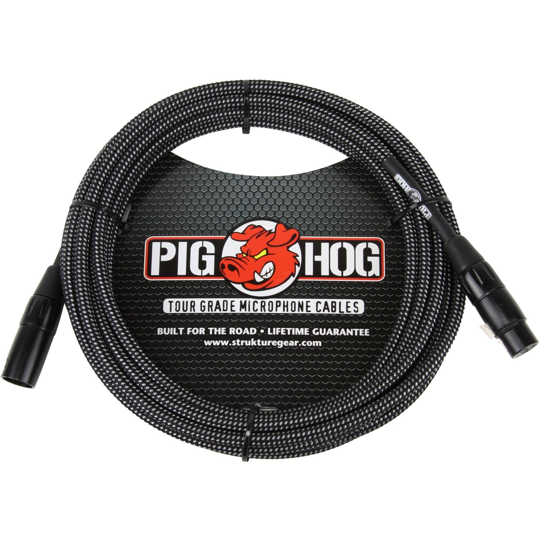 Pig Hog Black & White Woven Microphone Cable, 20 Foot XLR