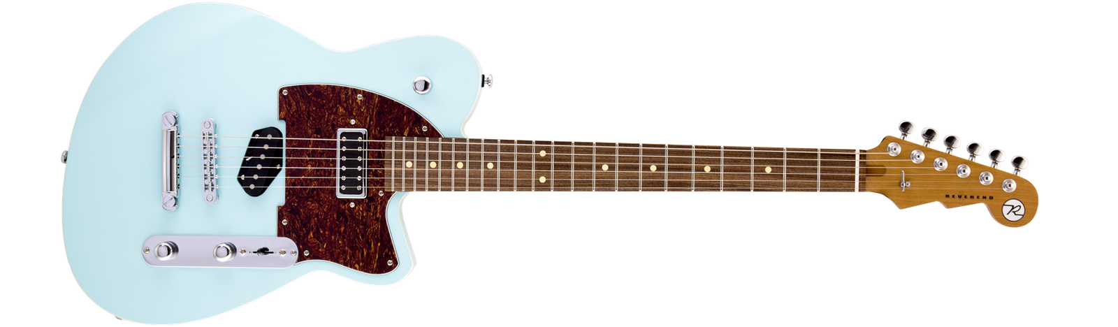 This guitar is all about the pickups. The Greasy T at the bridge delivers fat tone with bite and a percussive attack. The Retro Blast at the neck puts out a full, warm tone, but it’s a bit leaner than a full-sized humbucker. We positioned it slightly farther from the neck to better match the bridge pickup’s tone and output. If you’re looking for that vintage twang, but thicker and more versatile, then the Buckshot’s for you.