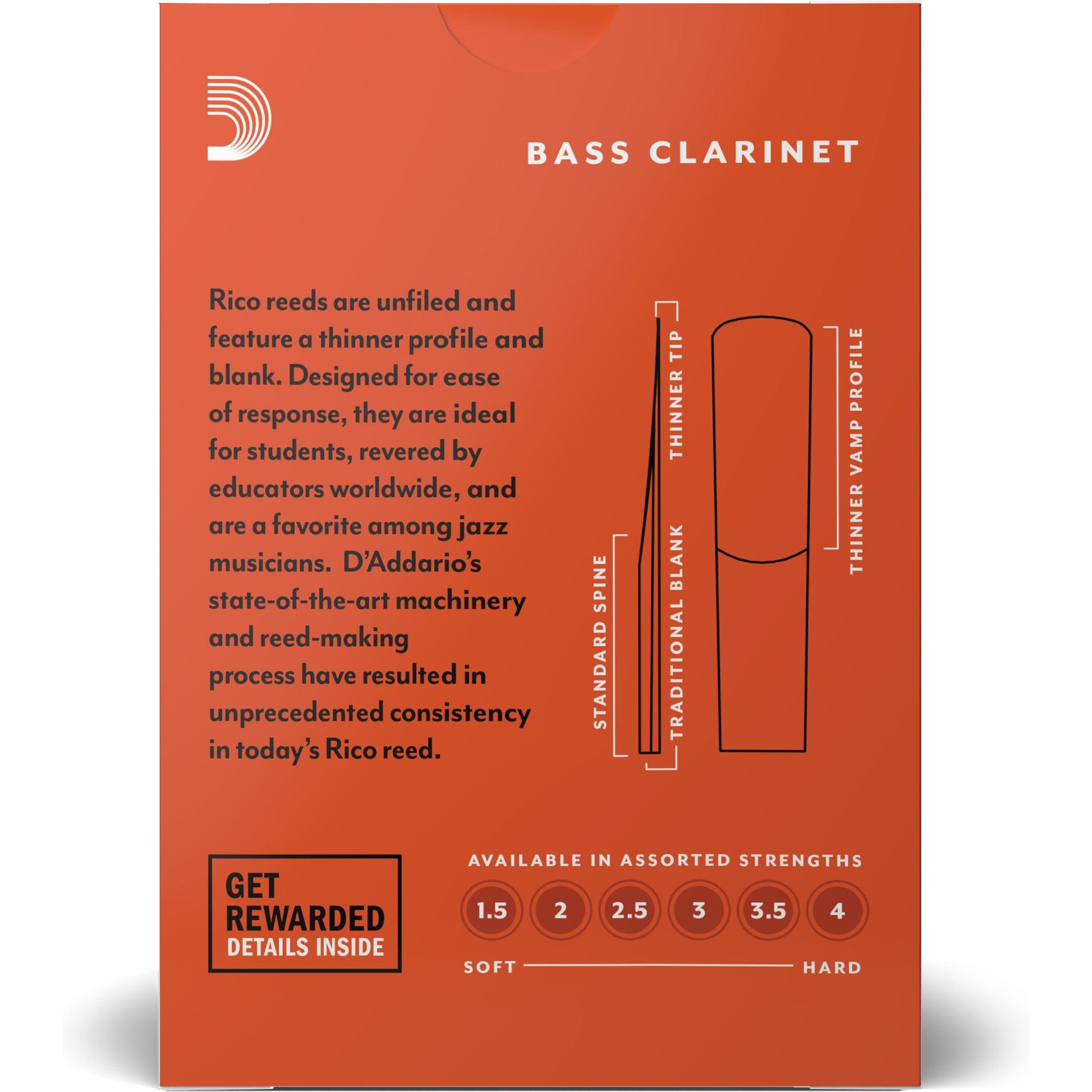 Rico by D'Addario Bass Clarinet Reeds, Strength 2.5, 10 Pack