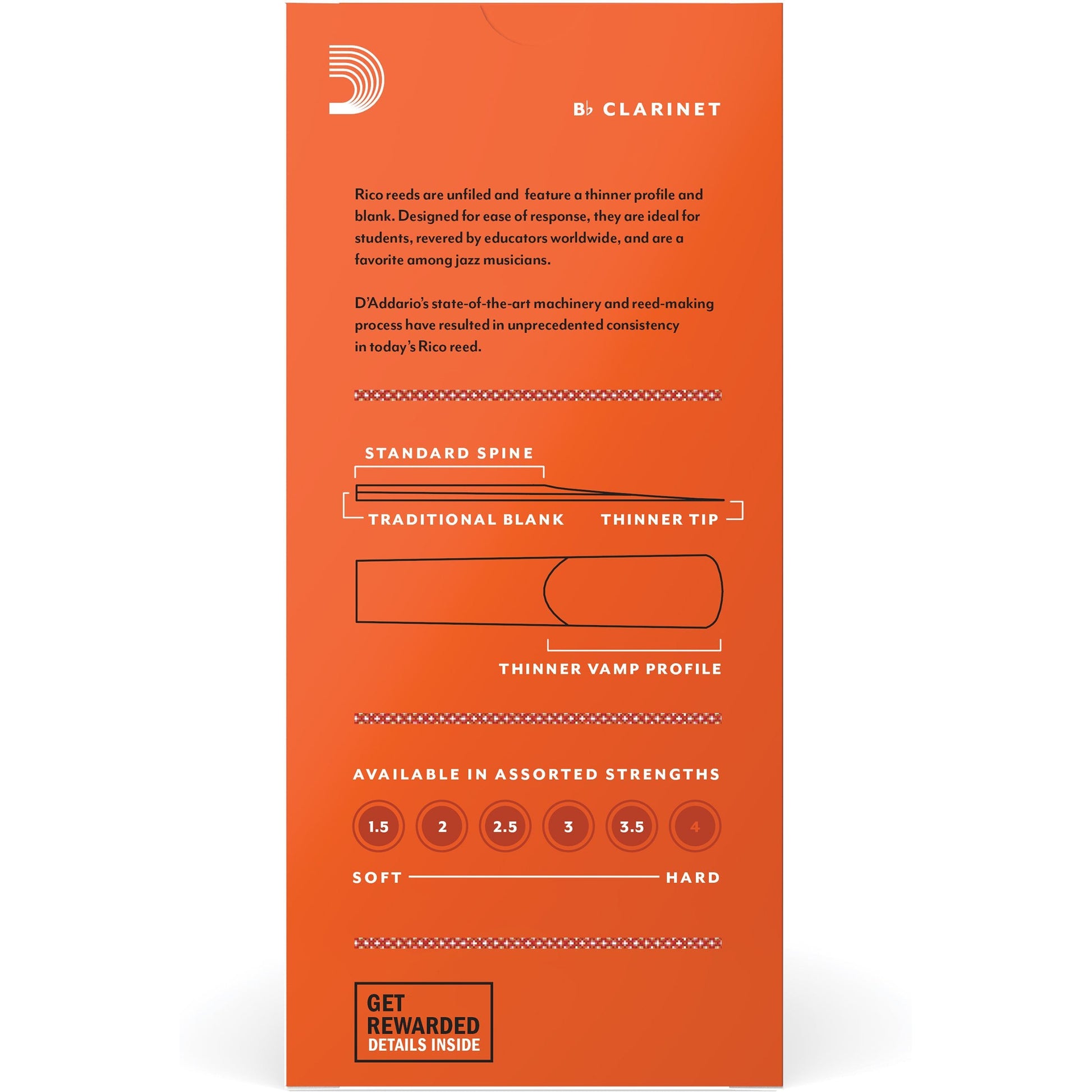 Rico by D'Addario Bb Clarinet Reeds, Strength 3, 25-Pack