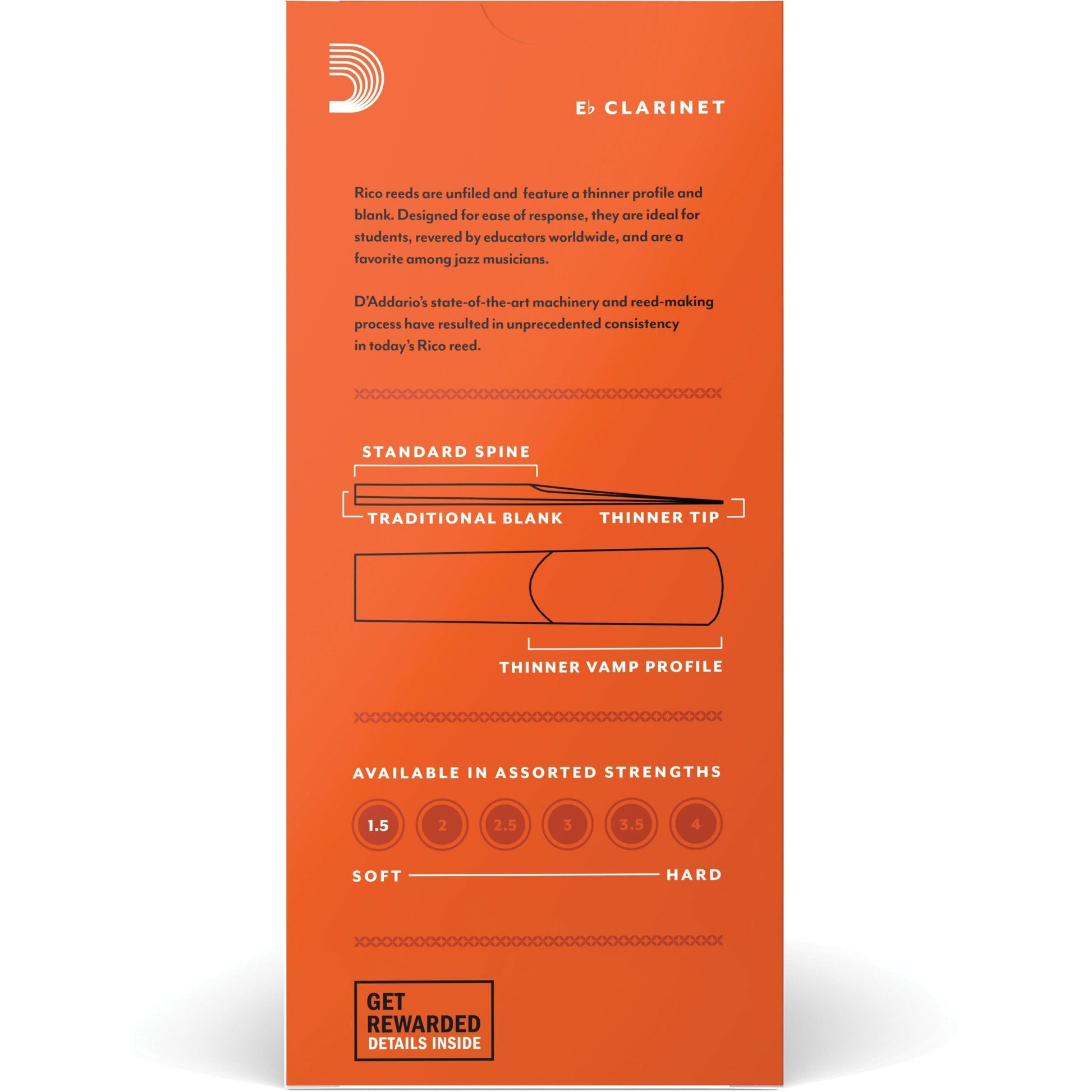 Rico by D'Addario Eb Clarinet Reeds, Strength 1.5, 25-Pack