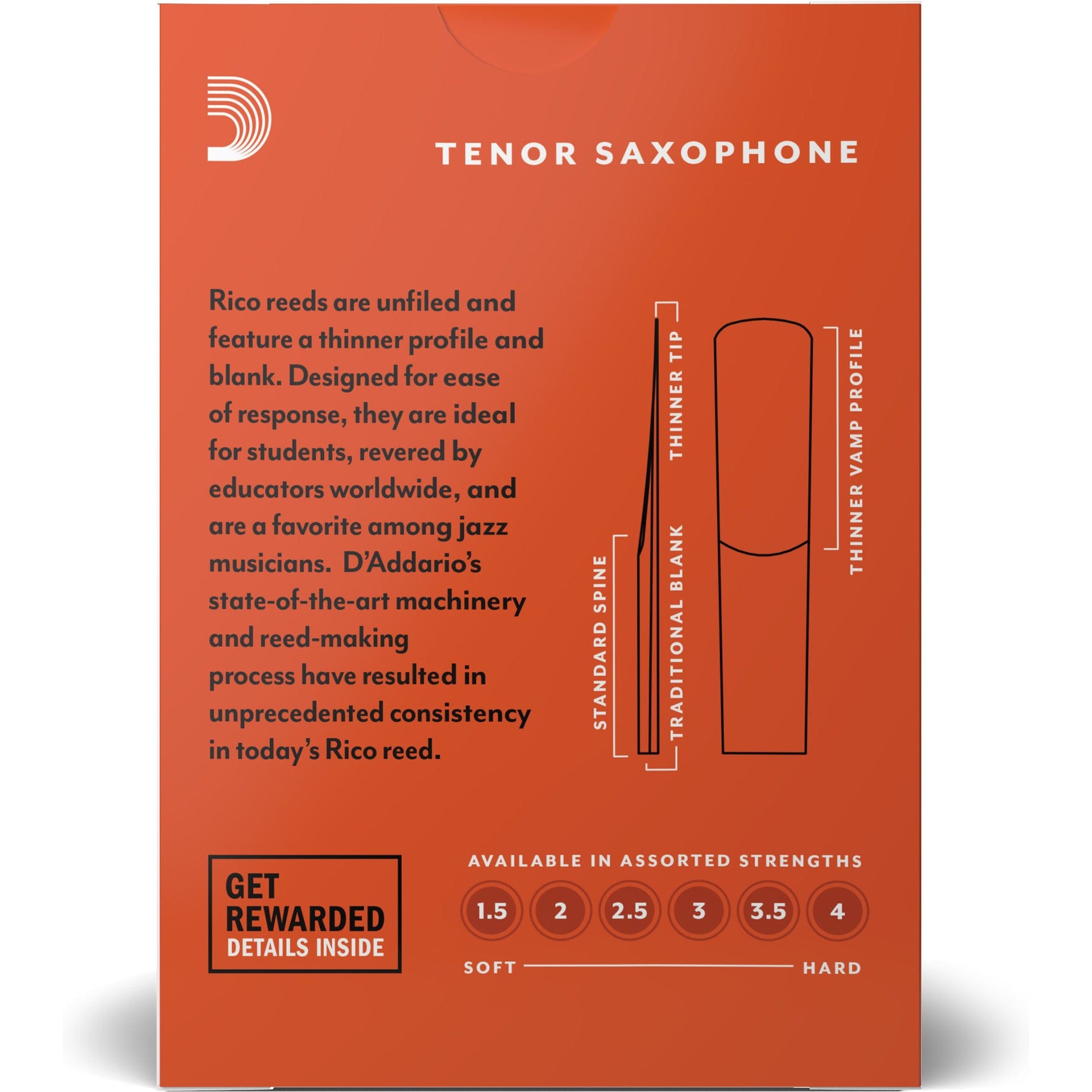 Rico by D'Addario Tenor Sax Reeds, Strength 2.5, 10-Pack