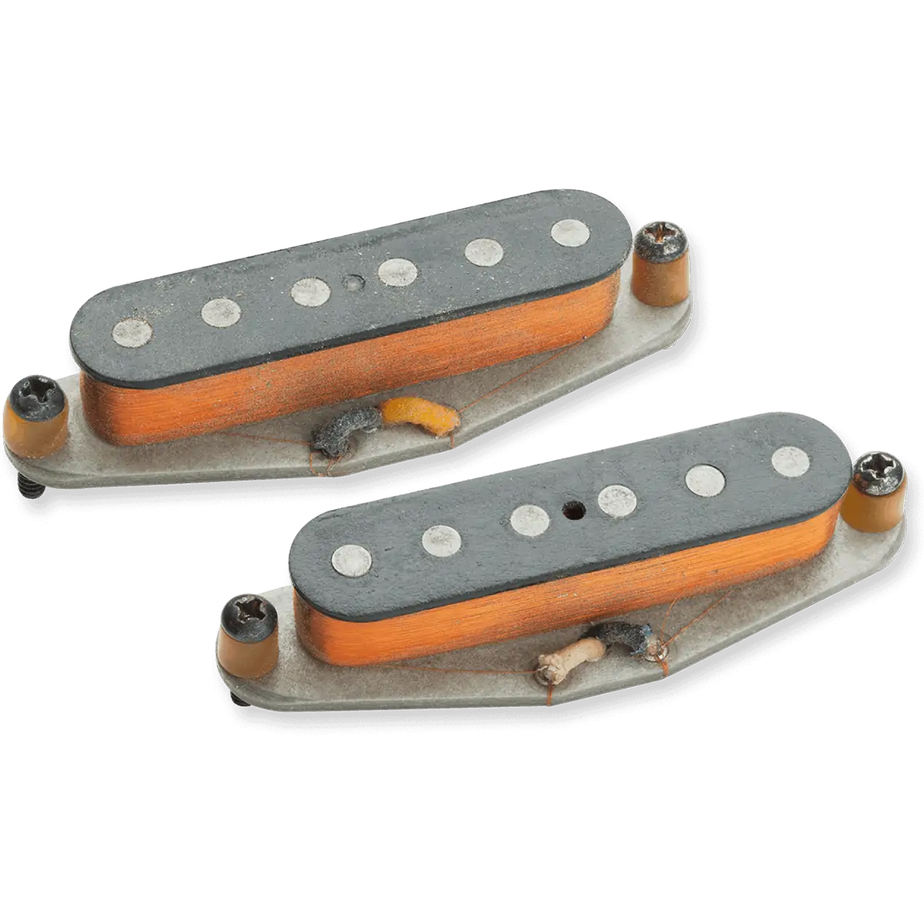 Seymour still remembers having his band mates drive him to 8th Street Music in Philadelphia back in the 60s to buy his first Fender Mustang after seeing one played on TV. There’s nothing like the sound of a Mustang with its short scale length, unique vibrato, and customized pickups. The Antiquity II Myth Mustang single coil pickups deliver a tone that is springy and almost bouncy like a Strat, but with a honkier midrange quality, and just the right amount of harmonic sparkle. The specially calibrated Alnico 5 rod magnets will add a nice, natural sustain to your instrument, and we use the same diameter and height pole pieces as the originals. Hand built in our Custom Shop, the Antiquity II vintage Mustang single coil pickups uses calibrated Alnico 5 rod magnets, vintage-correct light grey bottom flatwork, a custom coil wind with heavy formvar wire, cloth push-back lead wire, and each pickup is lacquered and wax potted.