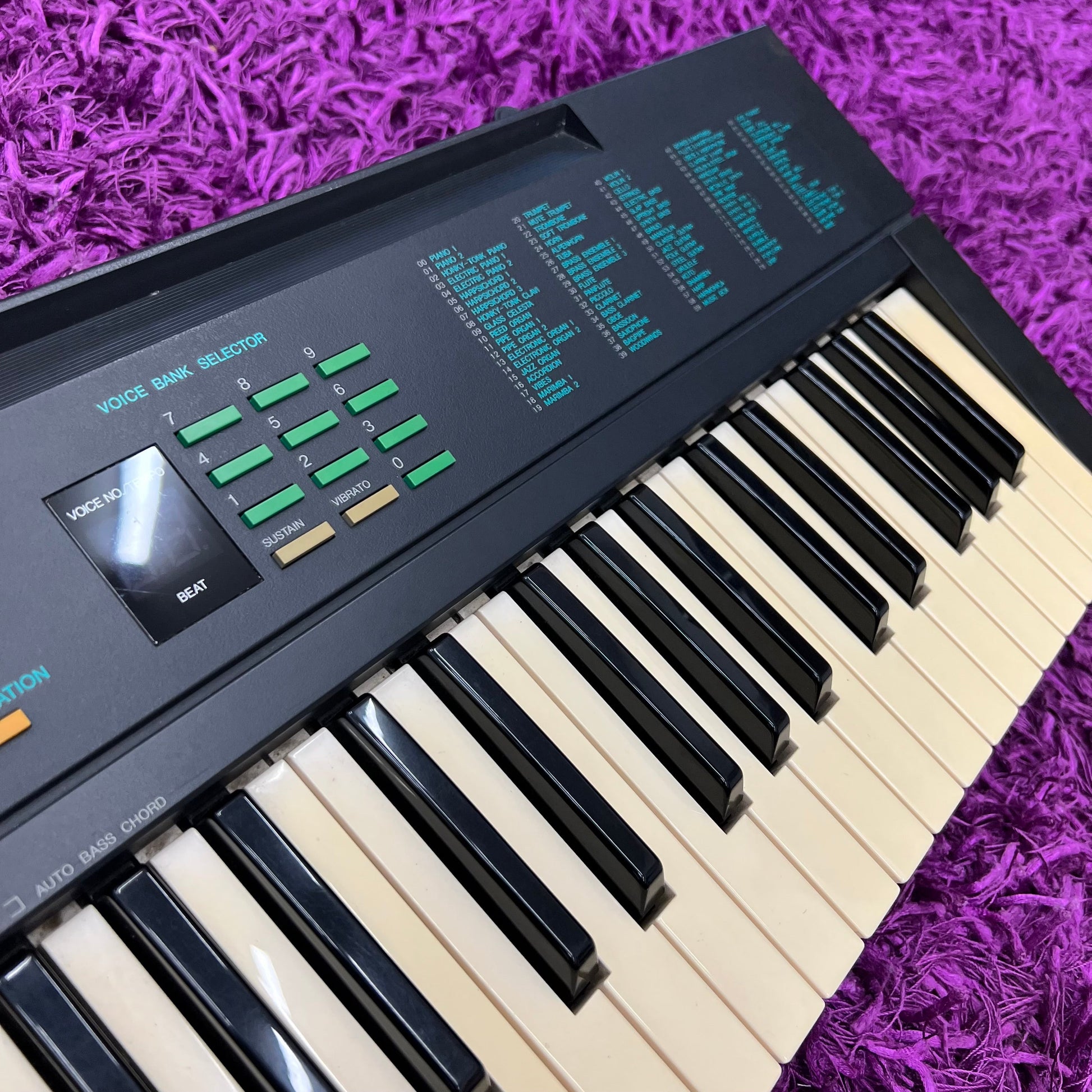 A continuation of beautiful tiny little lo-fi 80s synths, The PSR-6 is a 2-operator FM keyboard based on the Yamaha YM2413 chip. Featuring a ridiculous array of 100 tones including titles such as "dog pianist", "ghost" and "duck", I'm sure you can imagine just what kind of interesting sounds this tiny machine can produce. 49 keys, 100 tones, 10 rhythms, auto bass chord features, 1/4" output, and adapter jack. The PSR-6 is a 2-operator FM keyboard based on the Yamaha YM2413 chip.